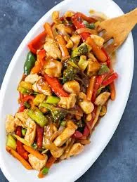 Stir fry chicken with a side dish
