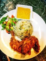 Fried rice and grilled chicken wings